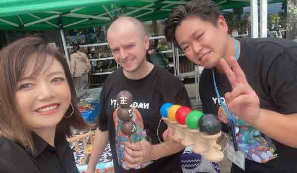 山形県の長井市の競技用のけん玉は生産量世界一。その地域のPRブース😆奇跡の私の才能✌