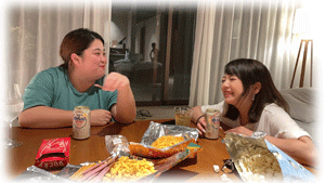 最後の夜は部屋でお菓子パーティ笑