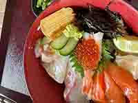 - お昼ゴハンは海鮮丼とカツカレー&ビールにぶどうジュース🍇おいしくいただきました✌