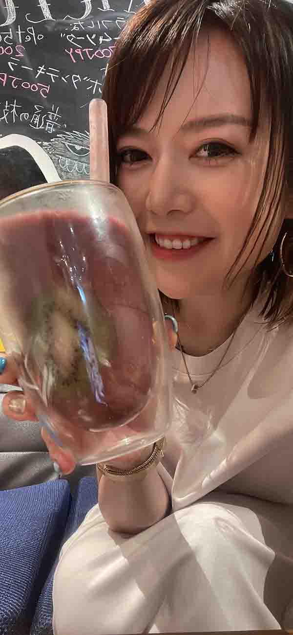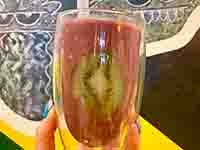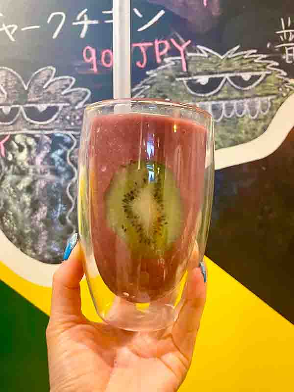 - フルーツ🥭がミックスされたアサイースムージー🫐🍹キウイ🥝の輪切がグラスに付いているのがばえる💕