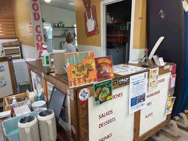 中に入るとこんな感じ🏄オーナーがサーファーということでサーフィンのアイテムが並んでおり買えちゃいます✨