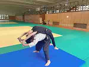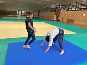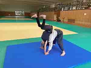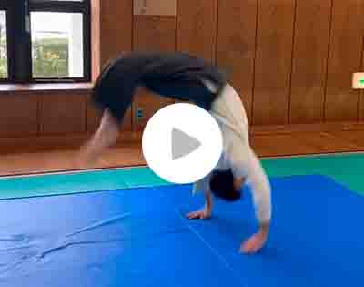 ウォーミングアップとして回転に慣れるため前転から。既に鼻血が出そう🤣続いて後転💦