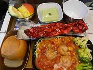 - なかなかボリューミーな機内食🍝ワイン🍷と後からコーヒーもいただきました☕